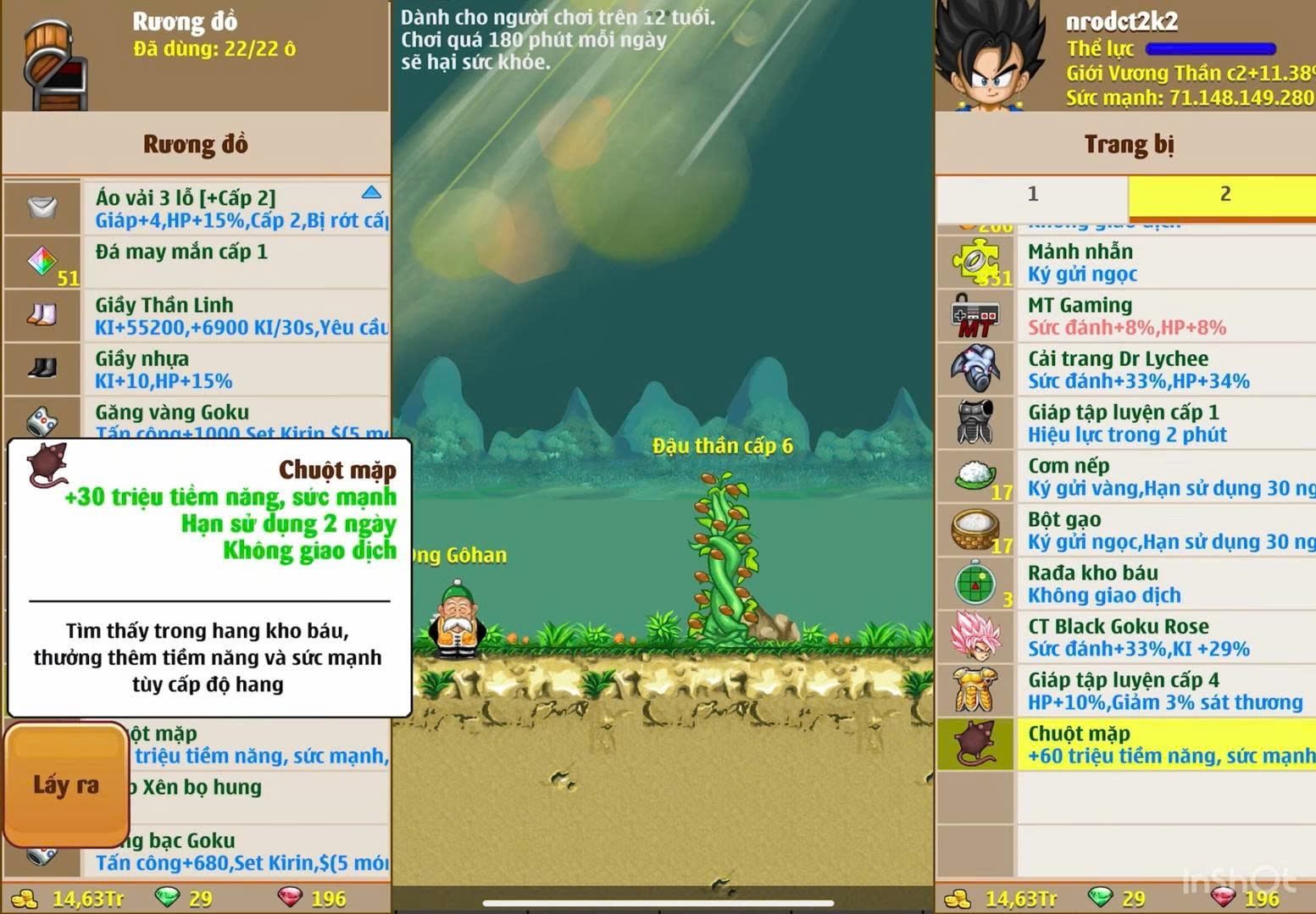 Khi sử dụng Chuột mập, người chơi sẽ nhận được một lượng tiềm năng sức mạnh (TNSM) nhất định. Đây là phần thưởng cực kỳ hữu ích giúp nhân vật phát triển nhanh hơn.